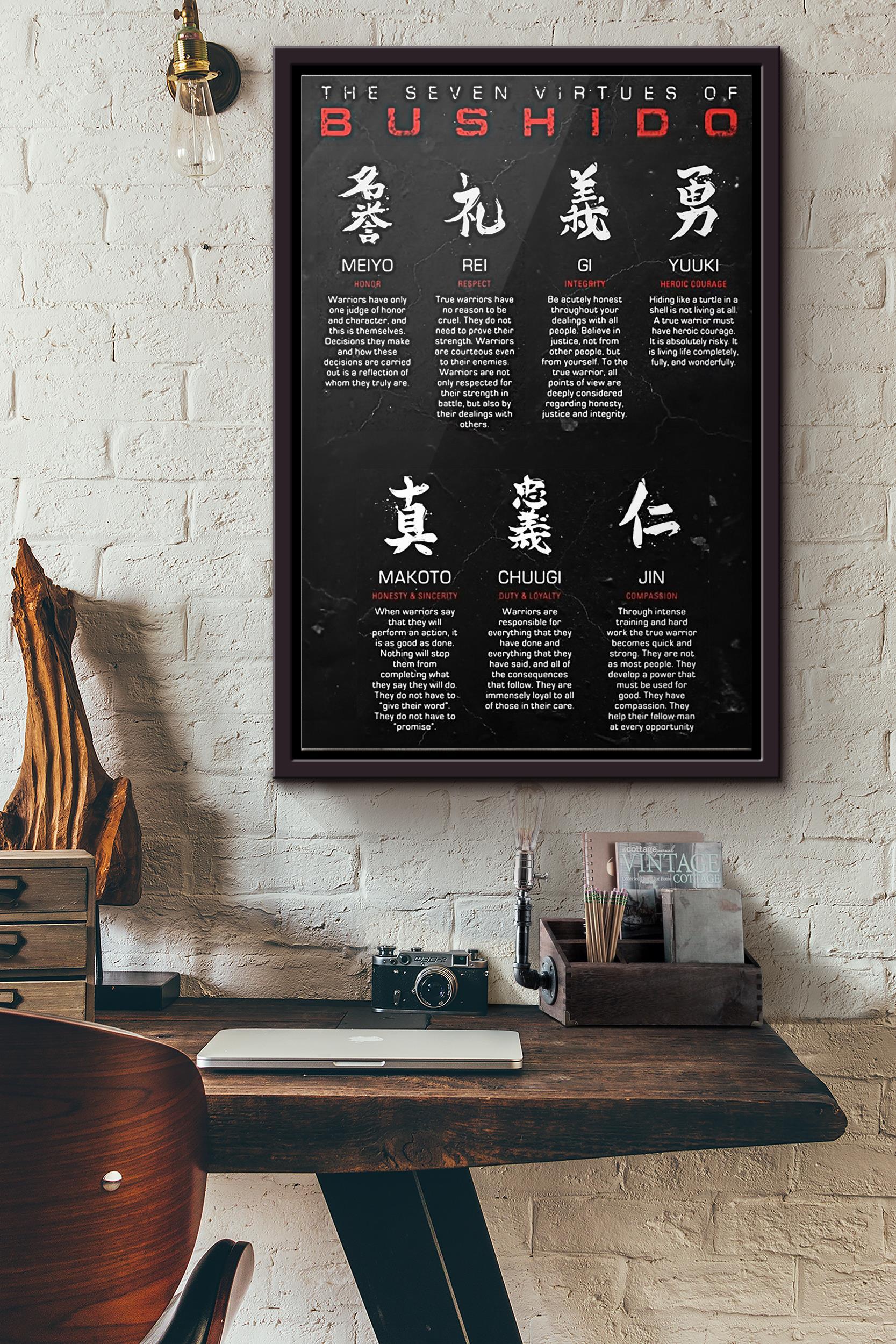 The Seven Virtues Of Bushido Samurai Poster Framed Matte Canvas