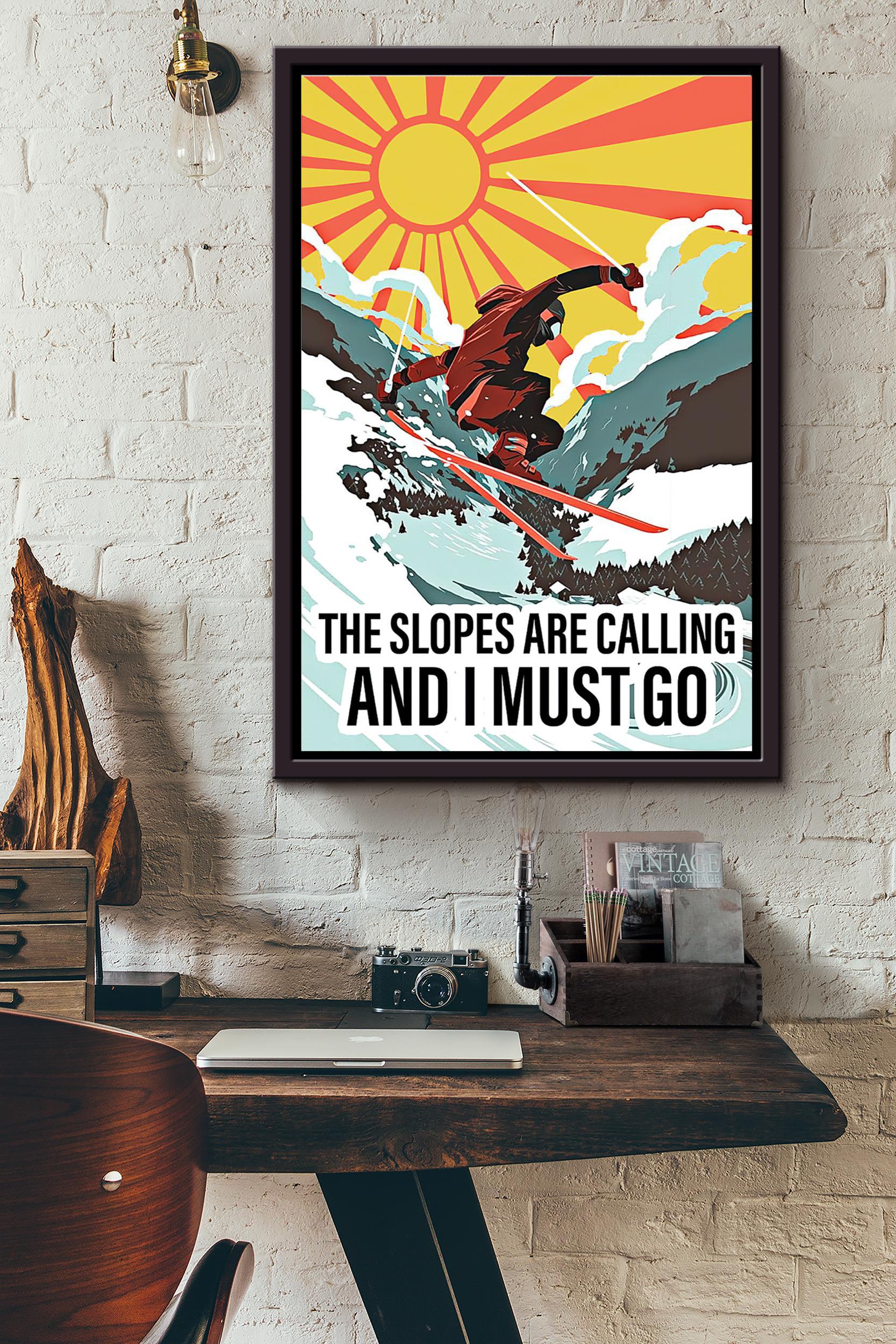 The Slopes Are Calling And I Must Go Sunburst Poster Framed Matte Canvas