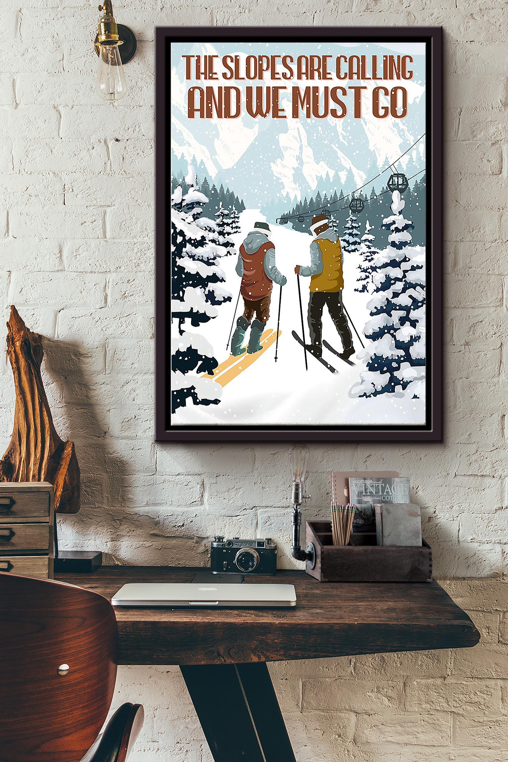 The Slopes Are Calling And We Must Go Skiing Poster Framed Matte Canvas