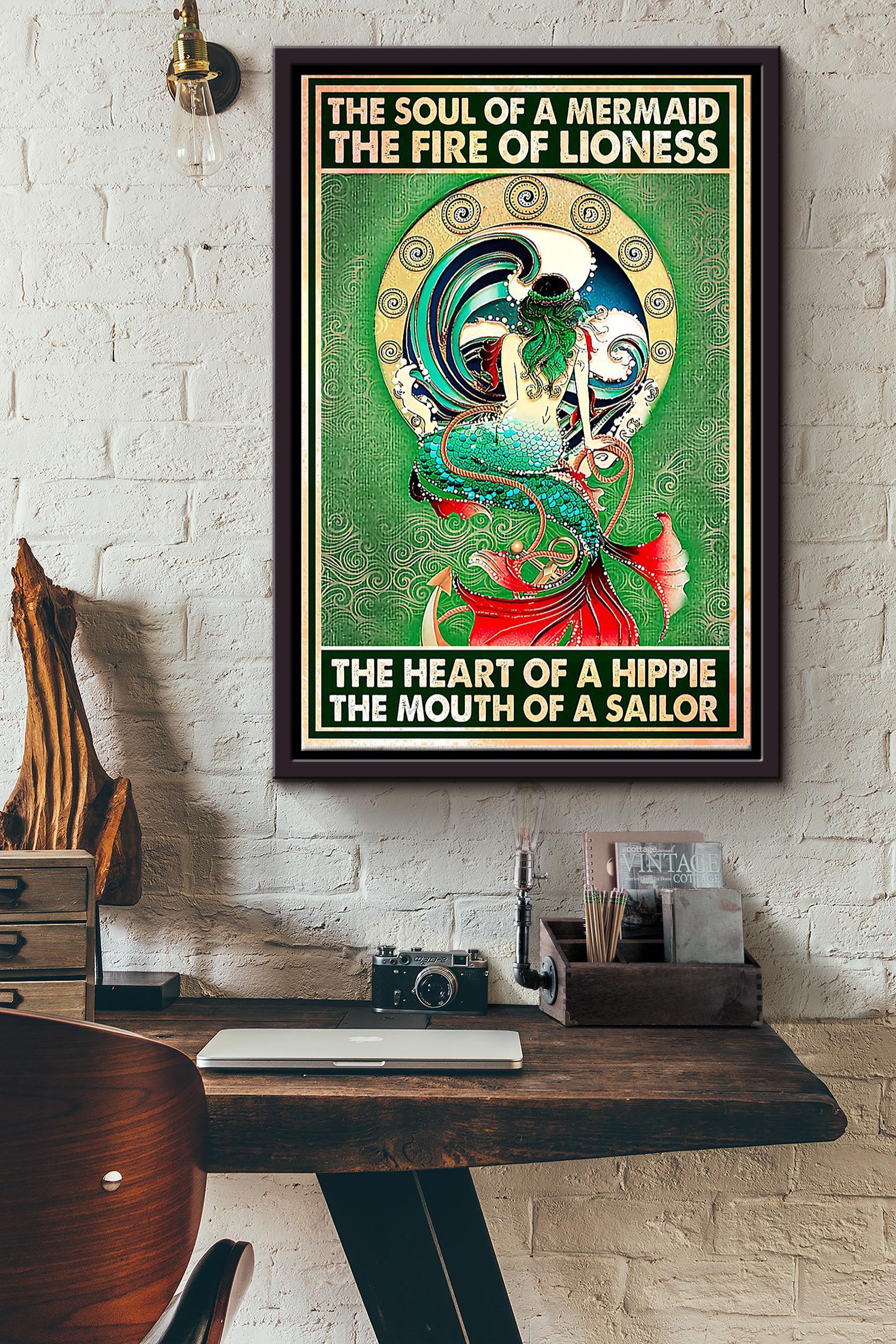 The Soul Of A Mermaid The Fire Od Lioness The Heart Of A Hippie The Mouth Of A Sailor Mermaid Poster Framed Matte Canvas