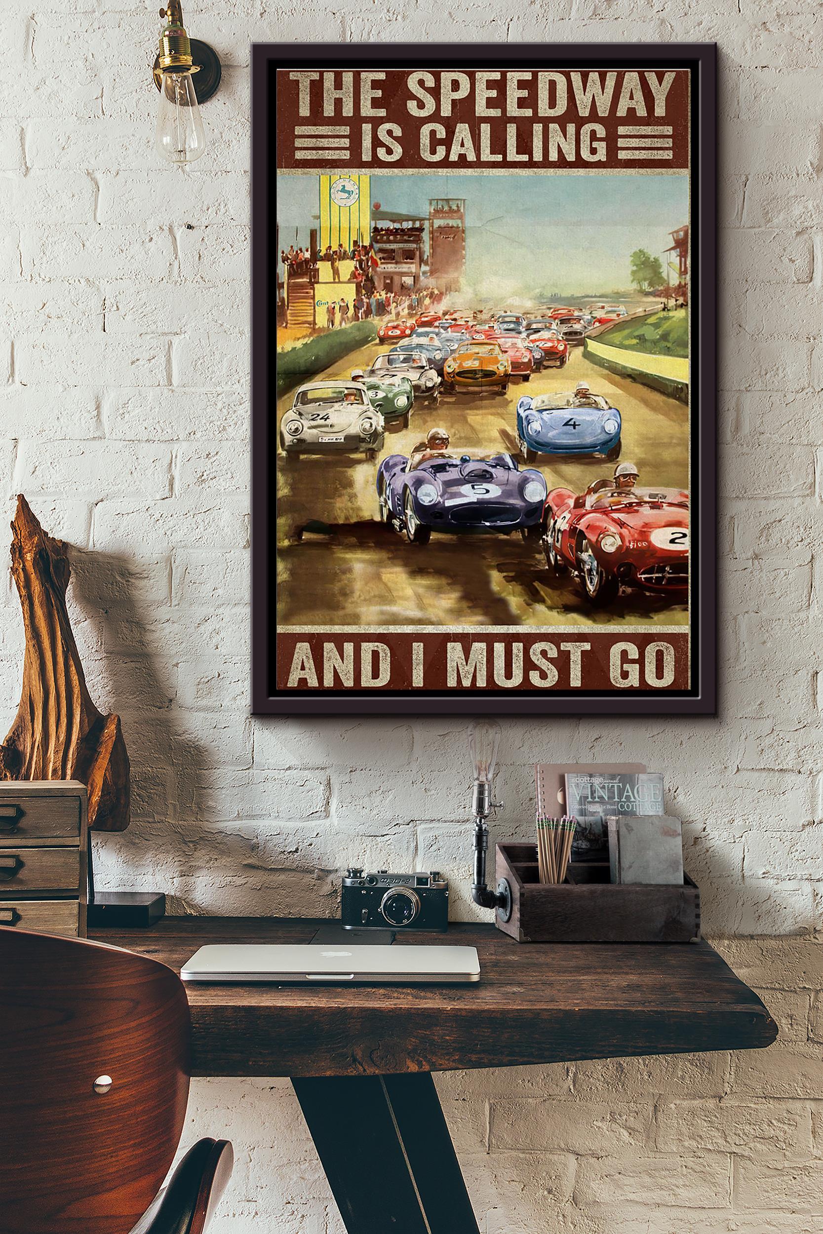 The Speedway Is Calling And I Must Go Car Racing Poster Framed Matte Canvas