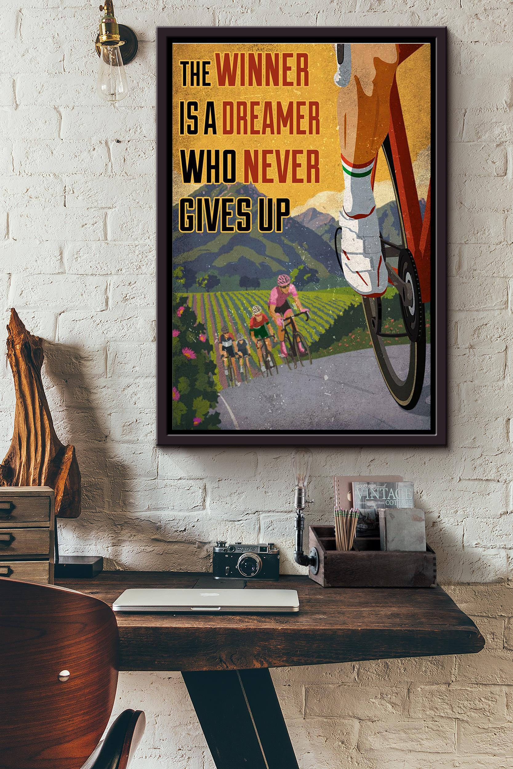 The Winner Is A Dreamer Who Never Gives Up Bikecycle Racing Poster Framed Matte Canvas