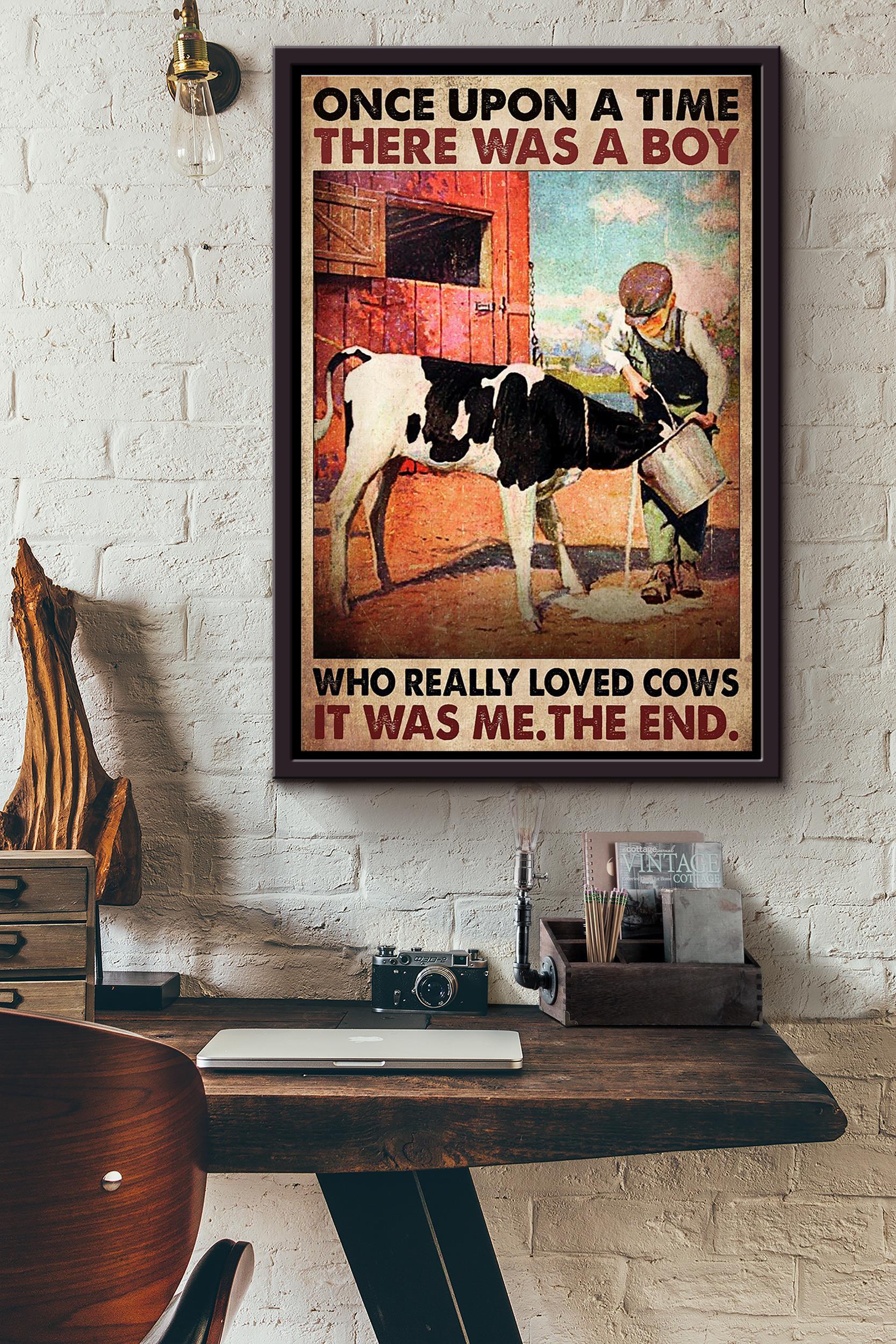 There Was A Boy Who Really Loved Cows It Was Me Poster Framed Matte Canvas