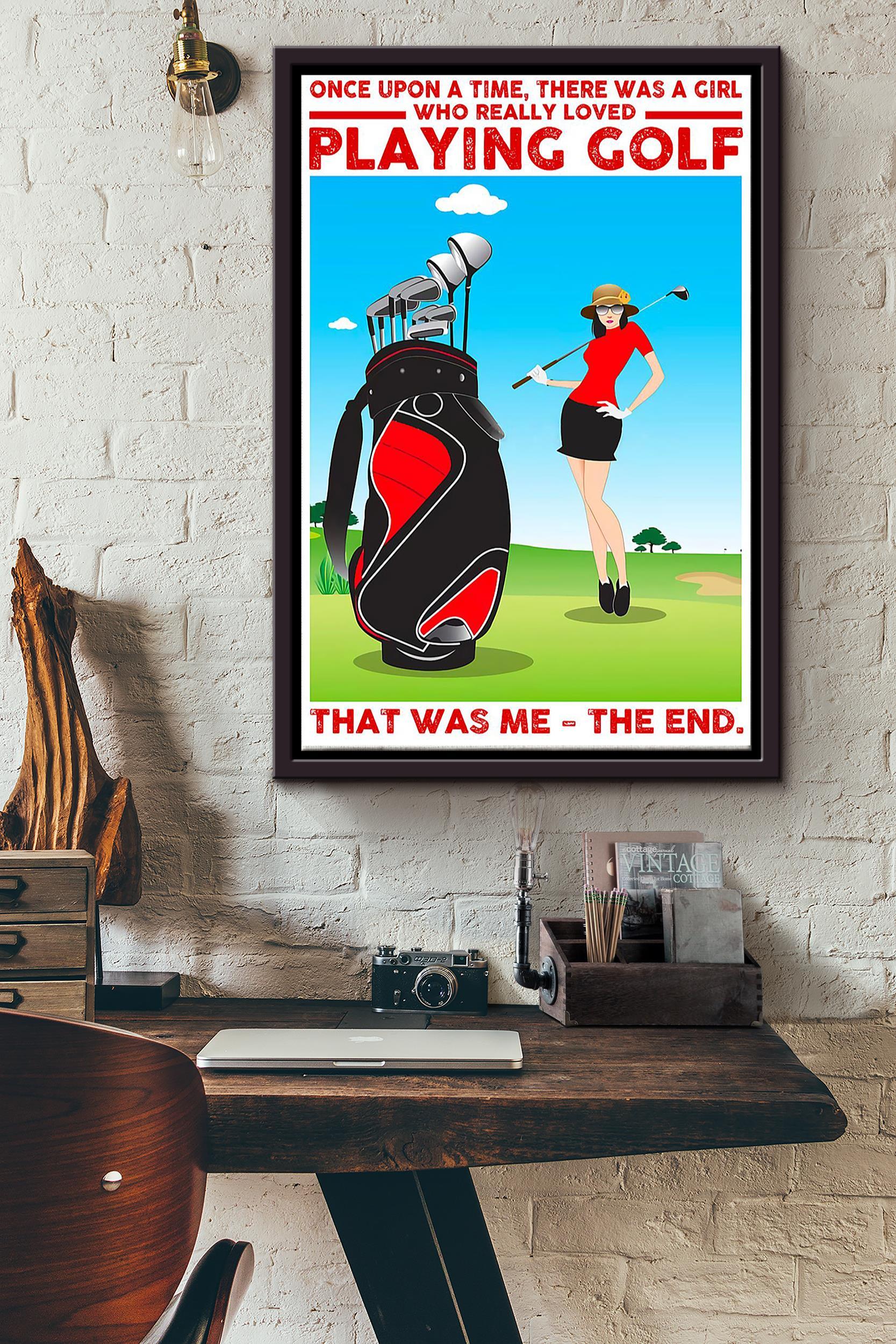 There Was A Boy Who Really Loved Playing Golf That Was Me Golf Player Color Drawing Poster Framed Matte Canvas