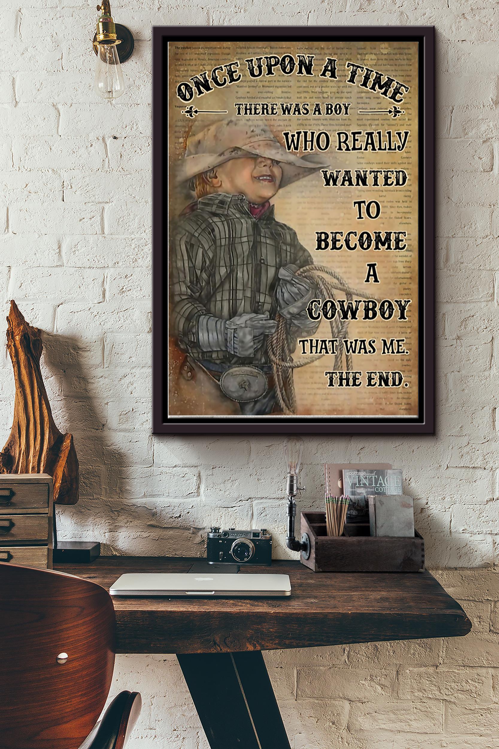 There Was A Boy Who Really Loved To Become A Cowboy It Was Me Vintage Poster Framed Matte Canvas