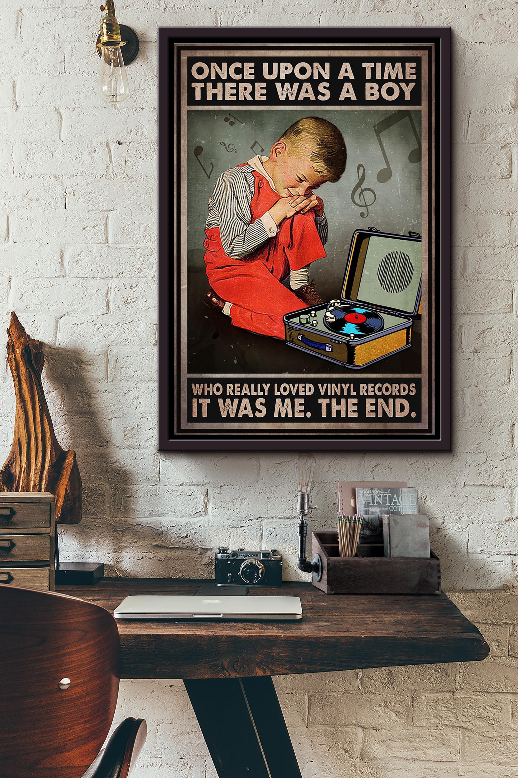 There Was A Boy Who Really Loved Vinyl Records It Was Me Poster Framed Matte Canvas