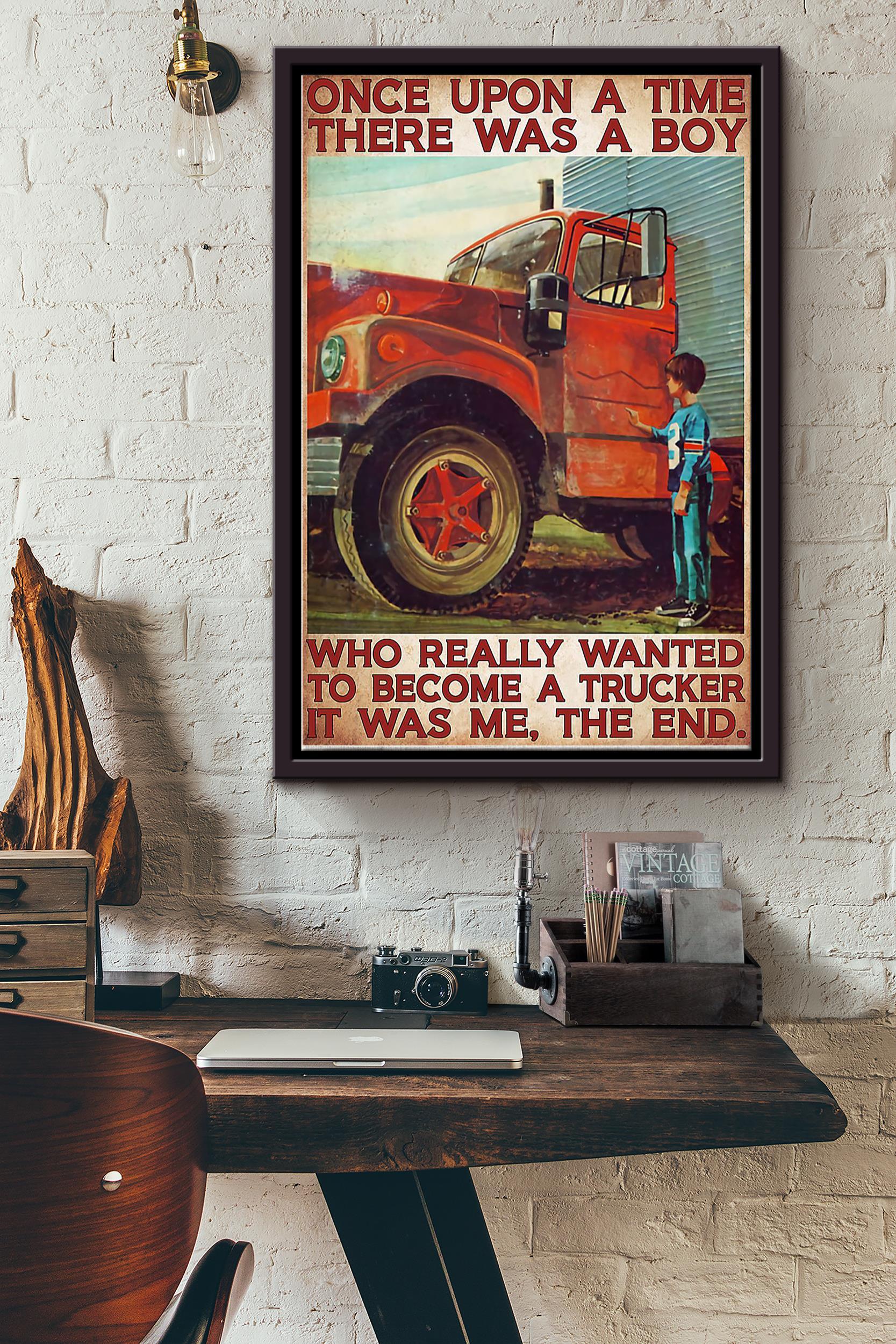 There Was A Boy Who Really Wanted To Become A Trucker It Was Me Poster Framed Matte Canvas