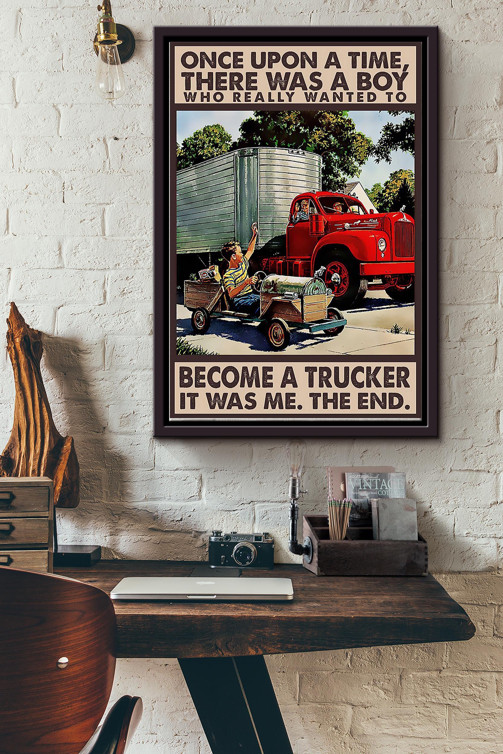 There Was A Boy Who Really Wanted To Become A Trucker It Was Me Truck Driver Poster Framed Matte Canvas