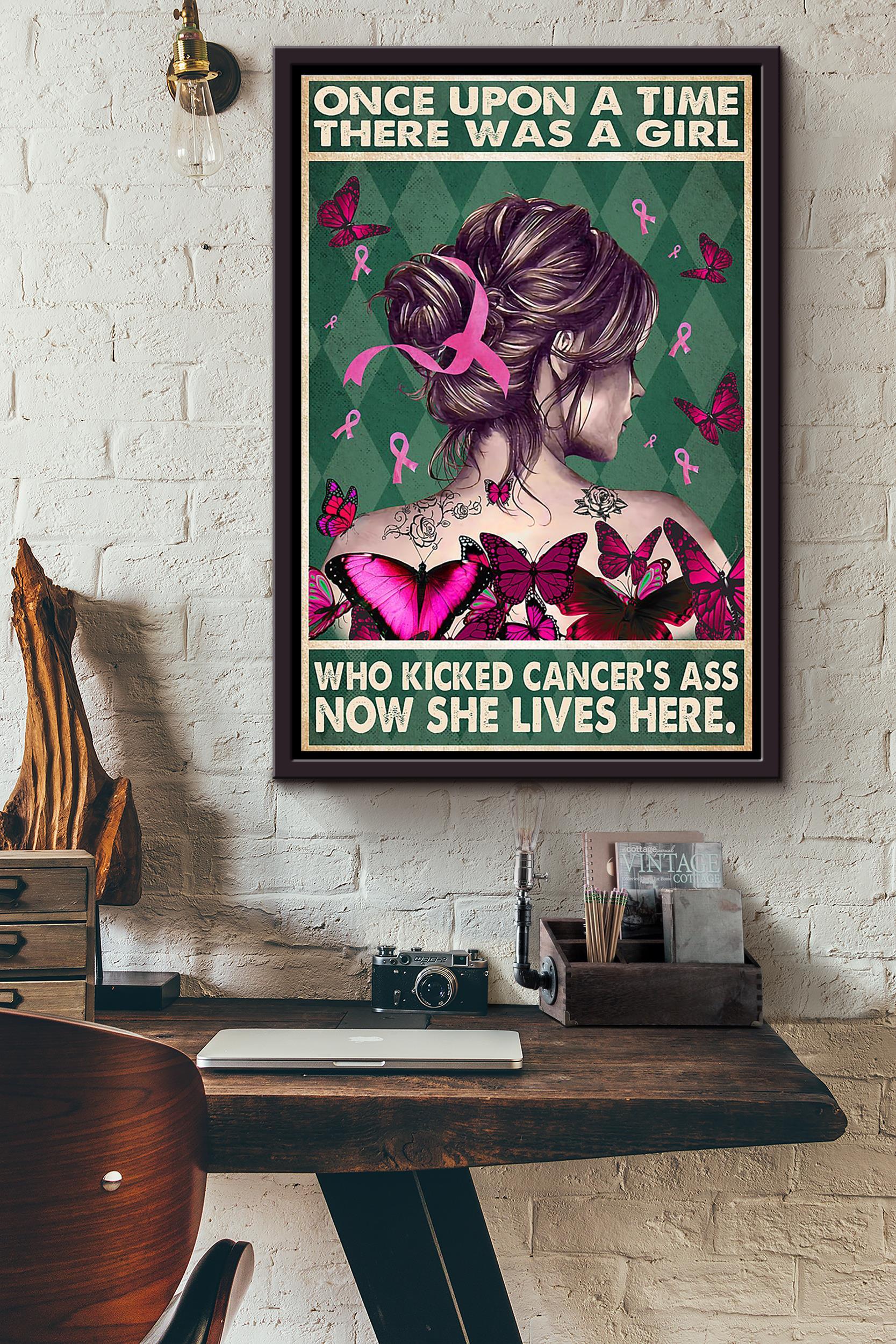 There Was A Girl Who Kicked Cancers Ass Now She Lives Here Poster Framed Matte Canvas