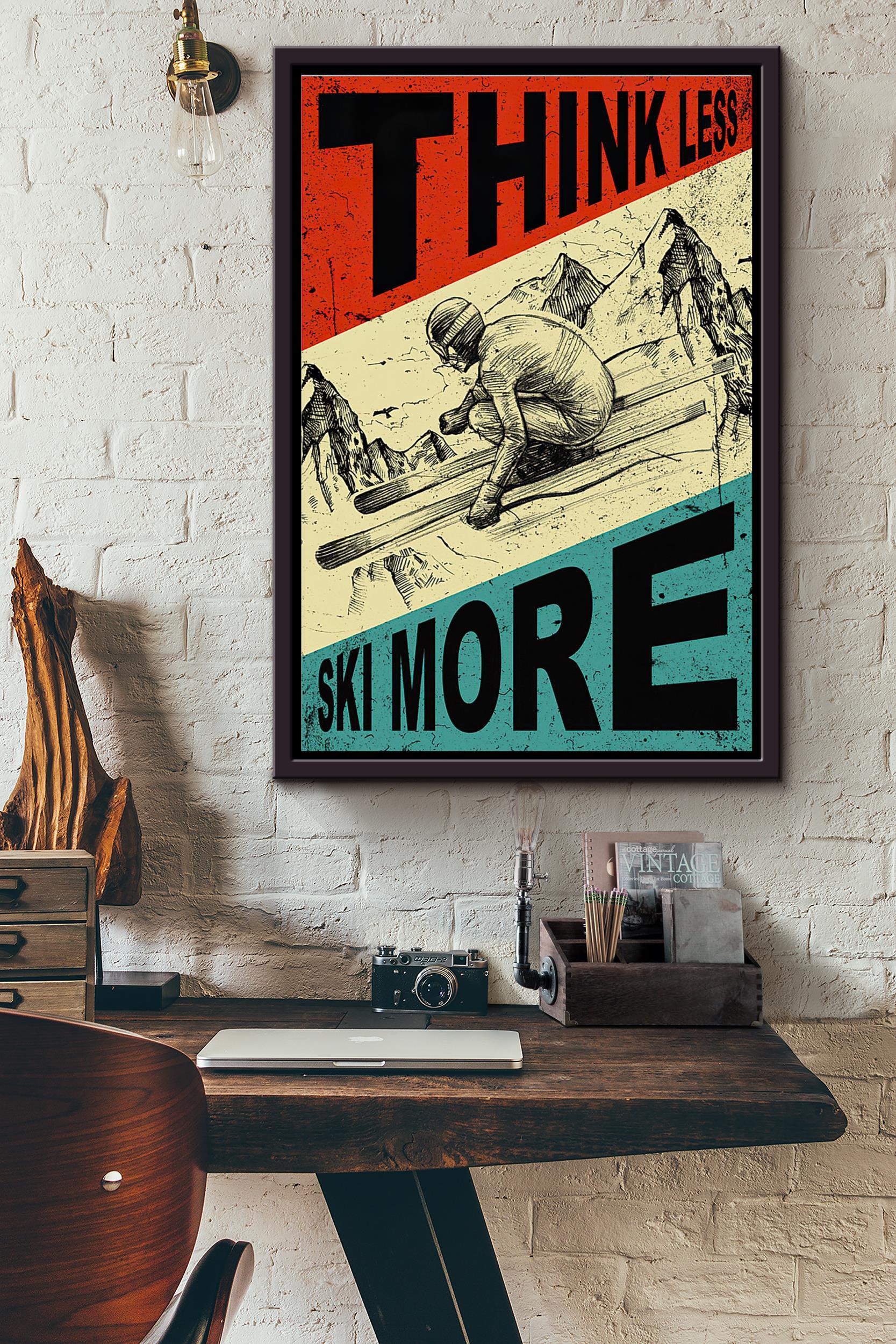 Think Less Ski More Vintage Poster Framed Matte Canvas