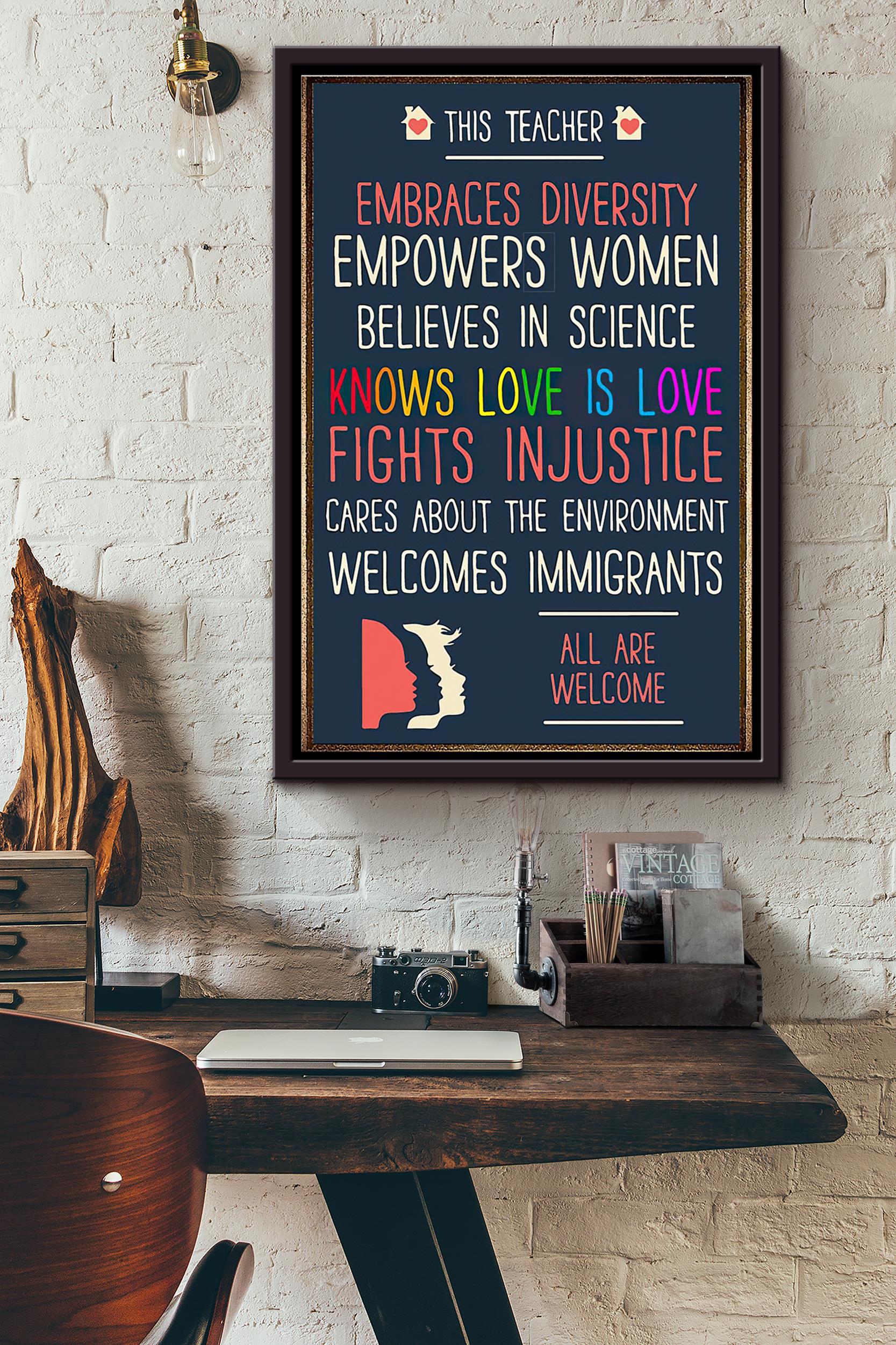 This Teacher Cares All Are Welcome Poster Framed Matte Canvas