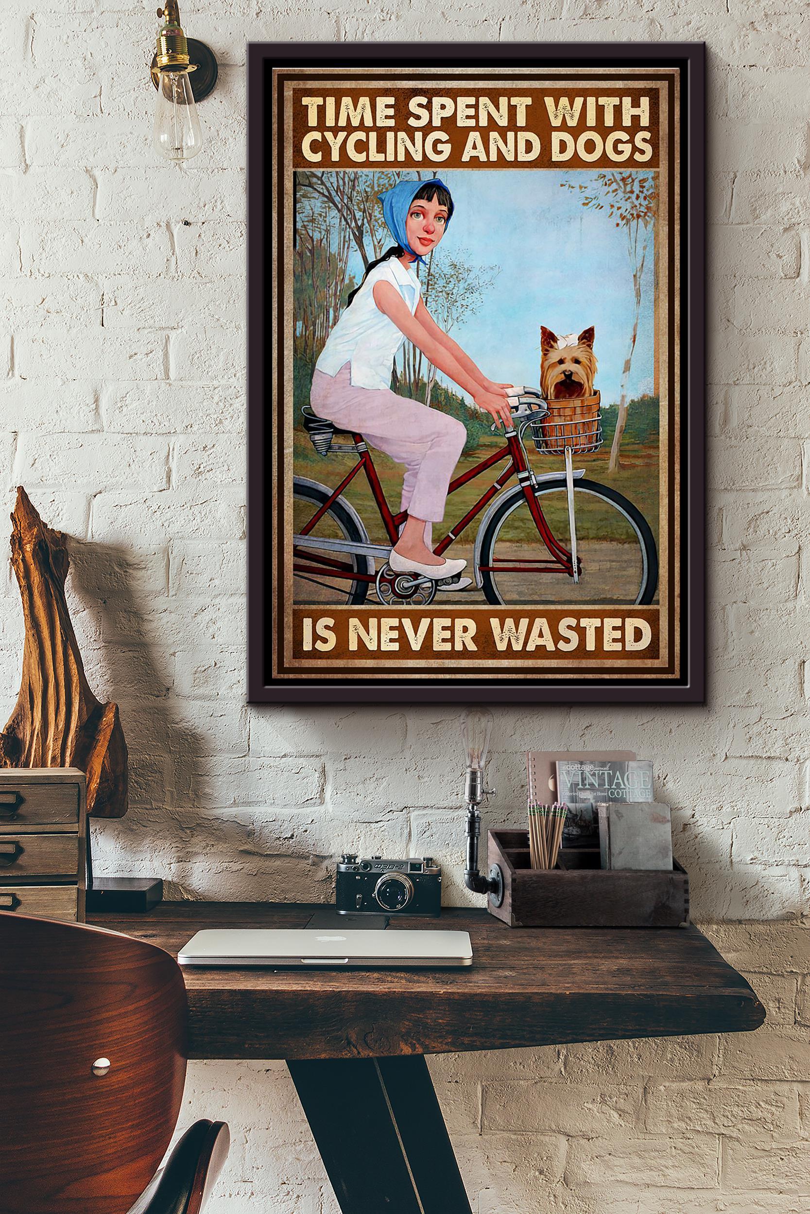 Time Spending With Cycling And Beardie Dogs Is Never Wasted Poster Framed Matte Canvas