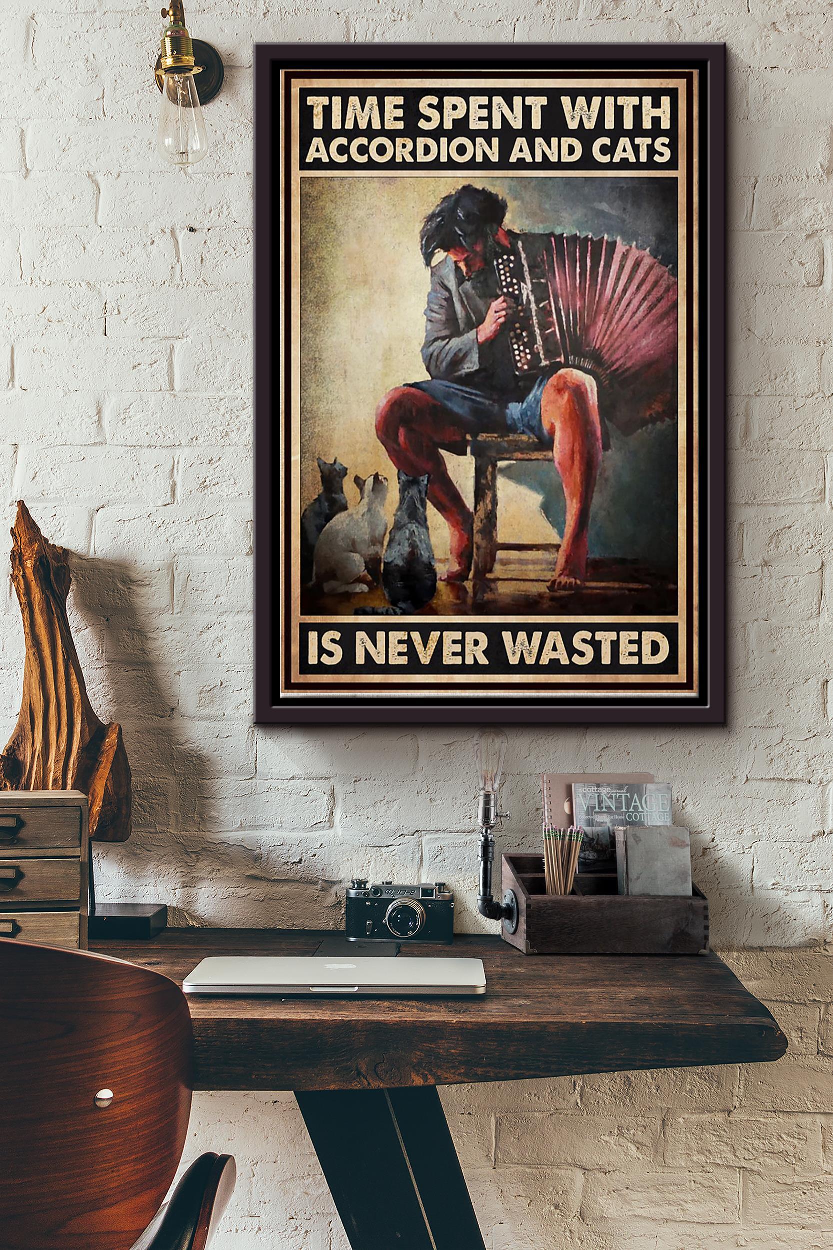 Time Spent With Accordion And Cats Is Never Wasted Poster Framed Matte Canvas