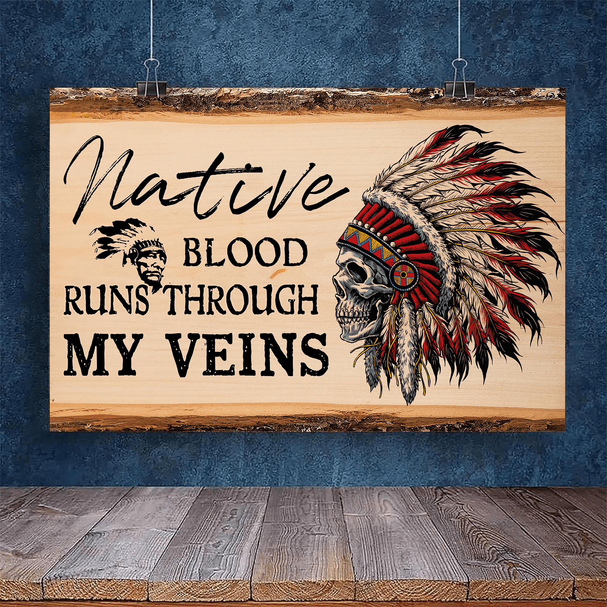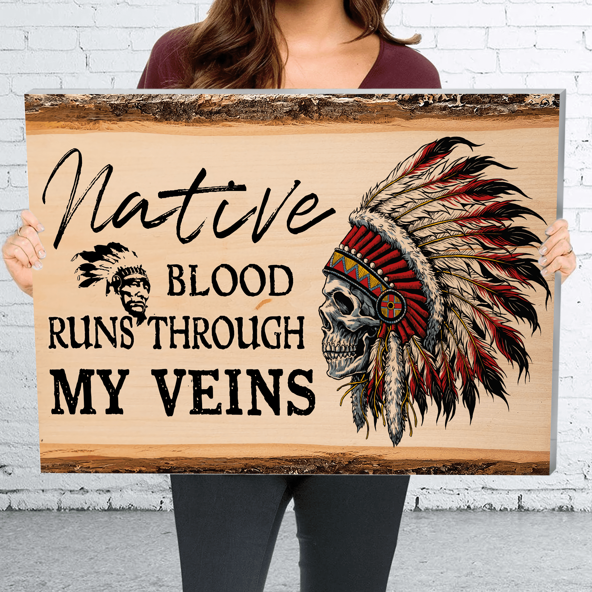 Tmarc Tee Native Blood Runs Through My Veins 3D All Over Printed Canvas Poster