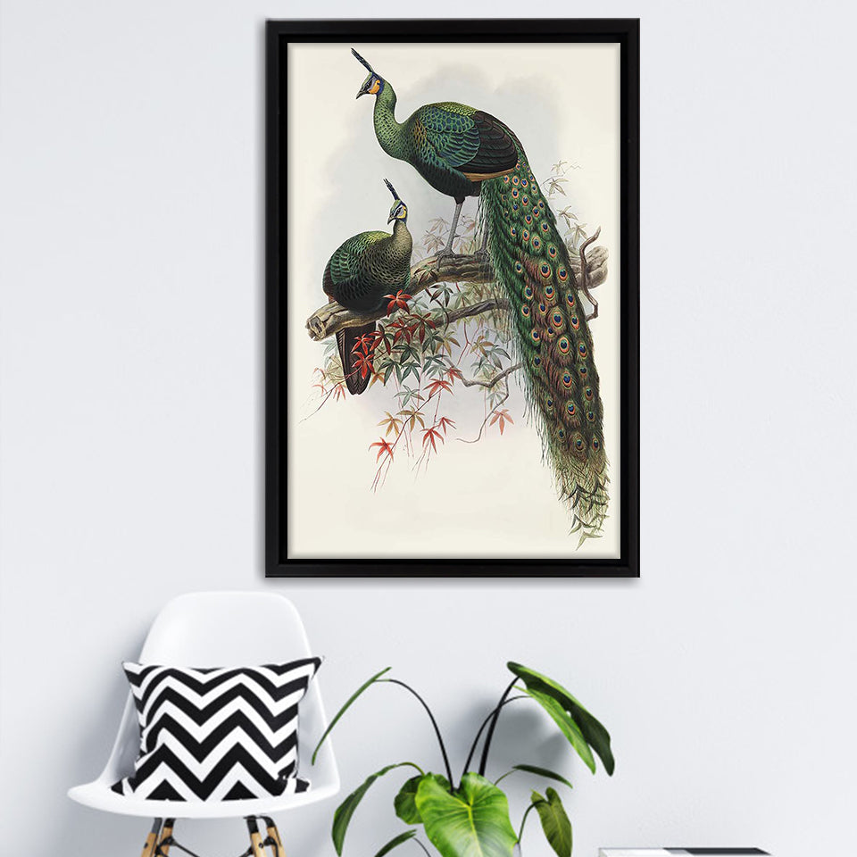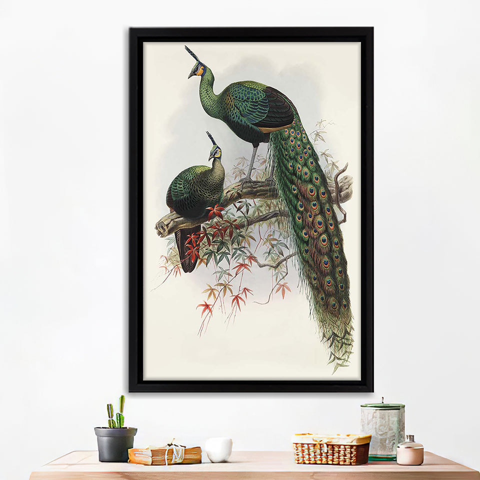 Two Peafowls Framed Canvas Print – Canvas Painting, Canvas Art, Wall Art, Wall Decor
