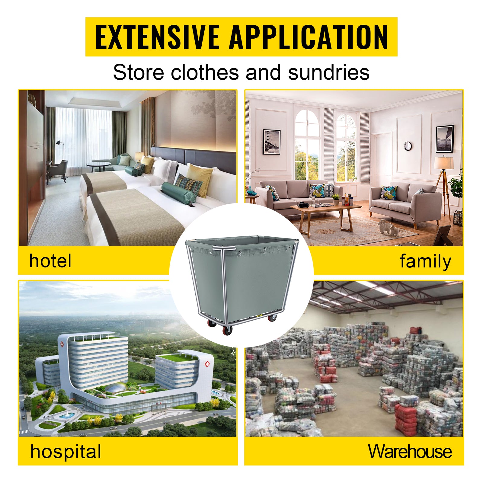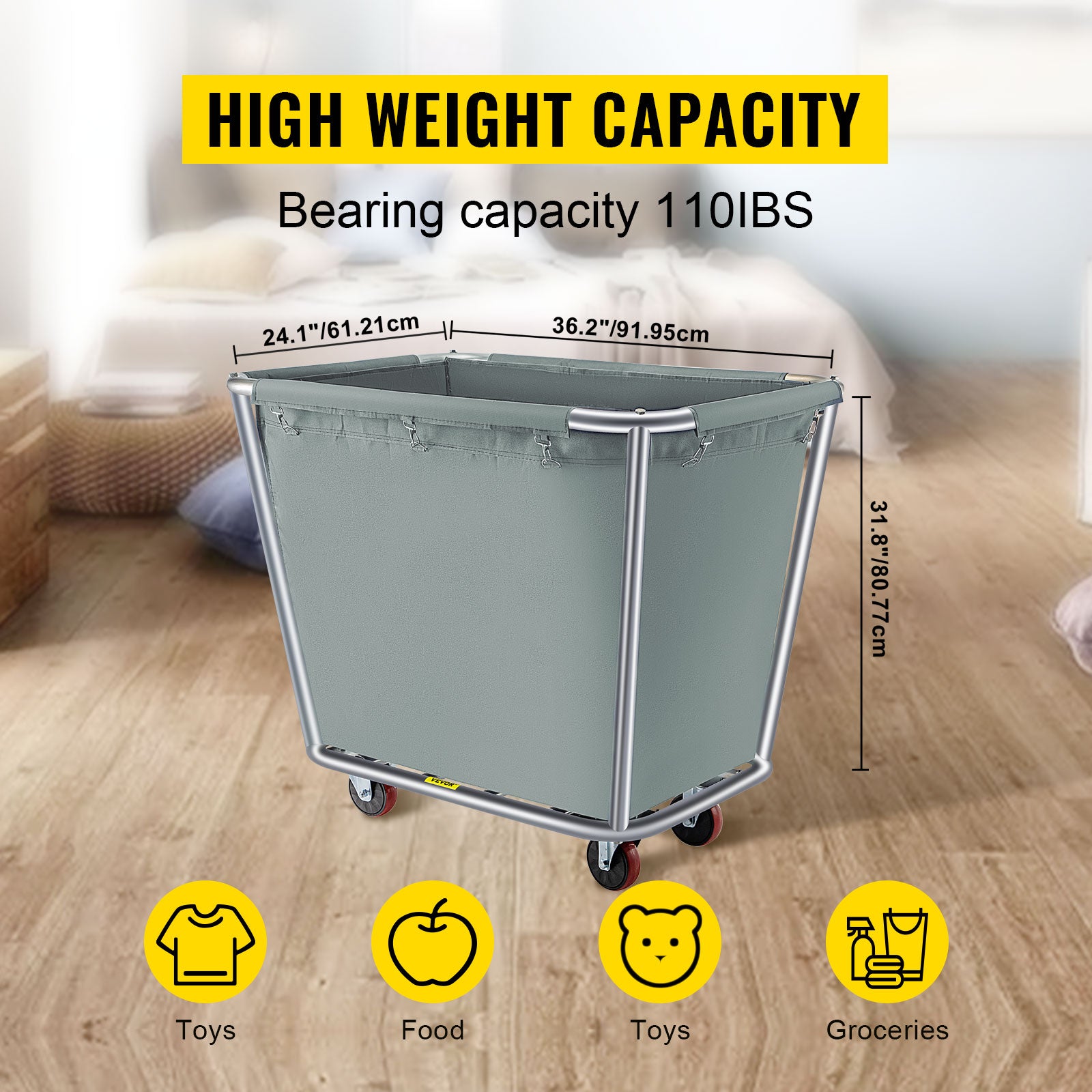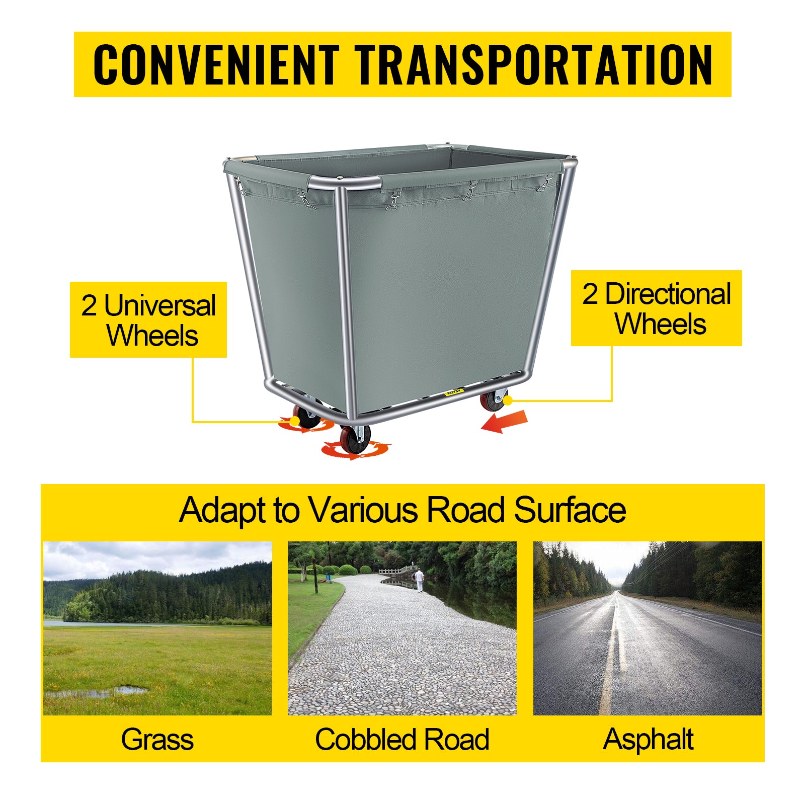 Vevor Laundry Cart 10 Bushel Steel Canvas Laundry Basket Truck Cap Basket Cart