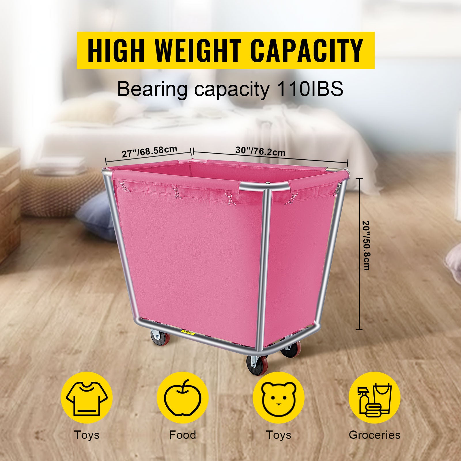Vevor Laundry Cart 6 Bushel Steel Canvas Laundry Basket Truck Cap Basket Cart