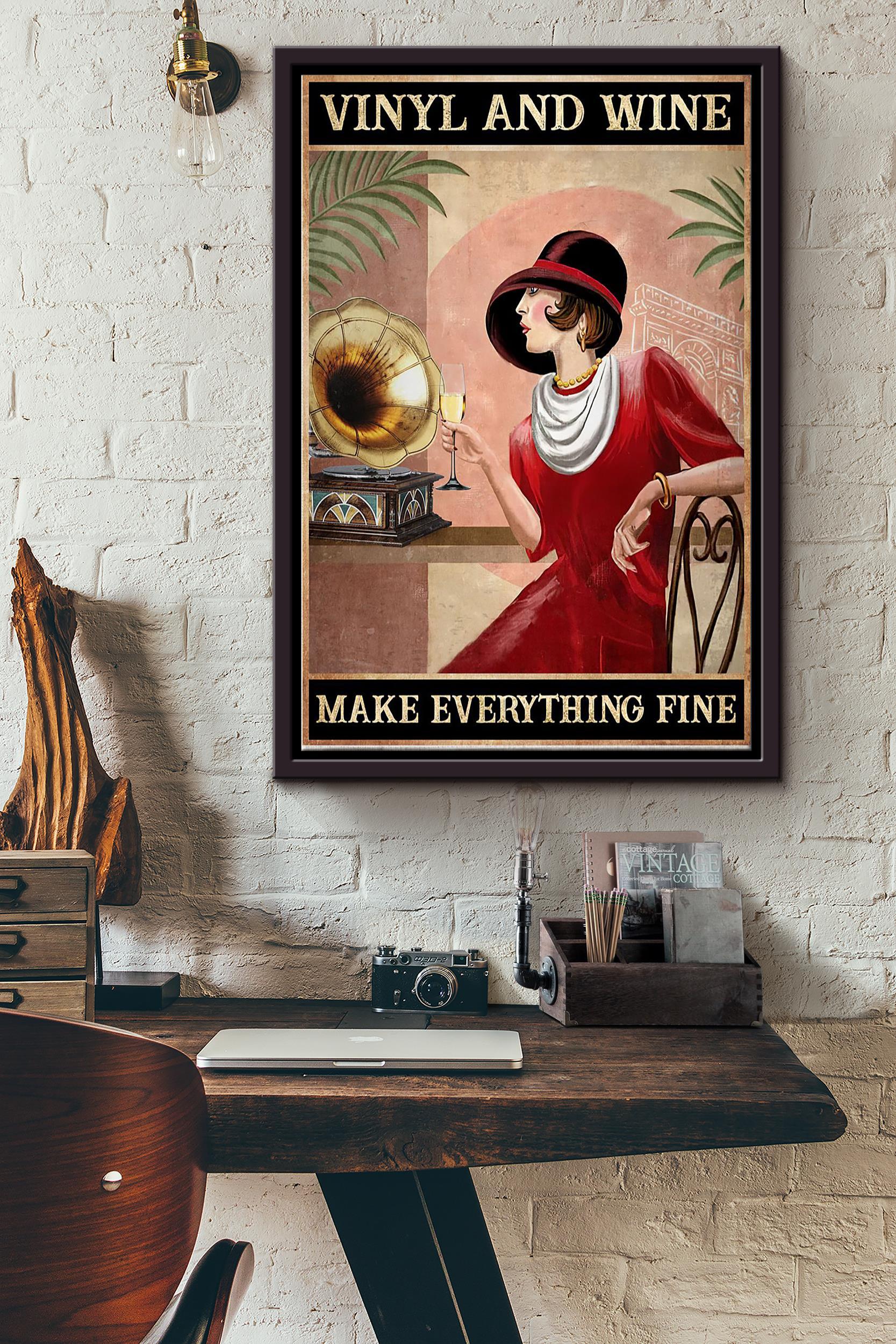Vinyl And White Wine Make Everything Fine Beautiful Woman Poster Framed Matte Canvas