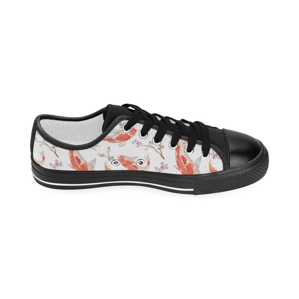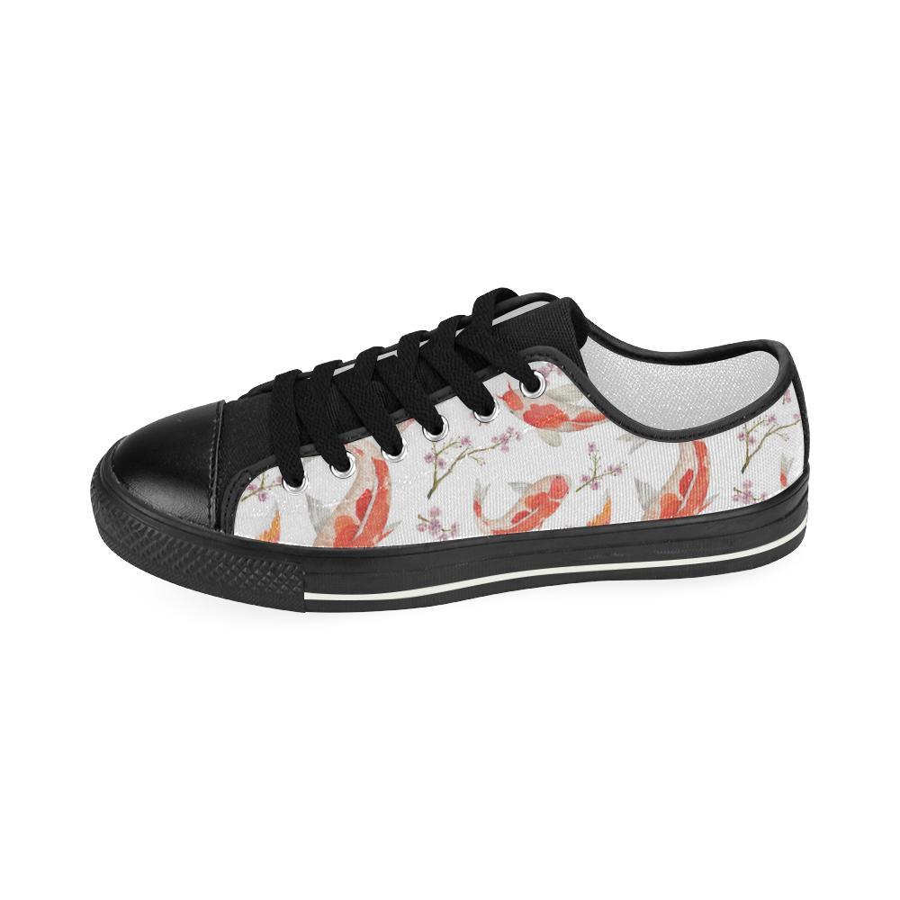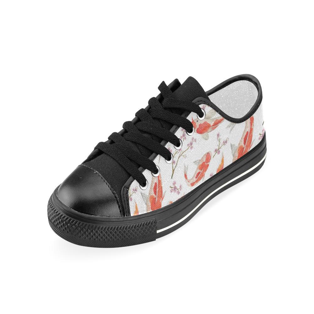 Watercolor Fancy Carp Pattern Kid’S Low Top Canvas Shoes Black