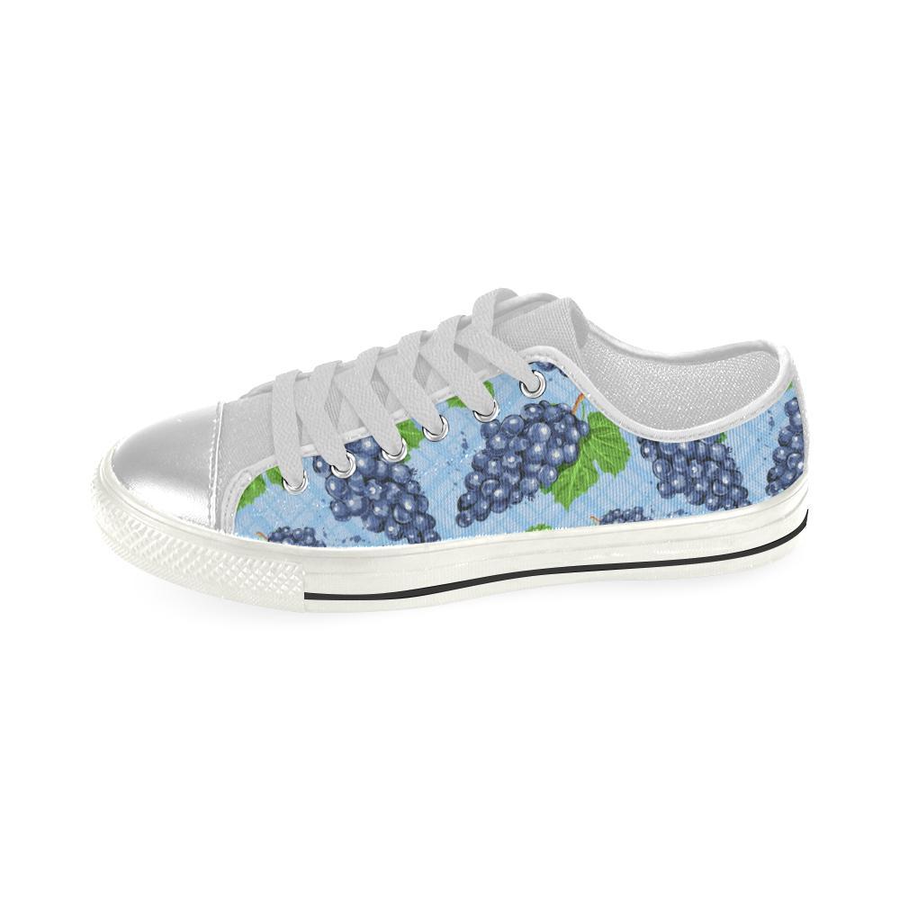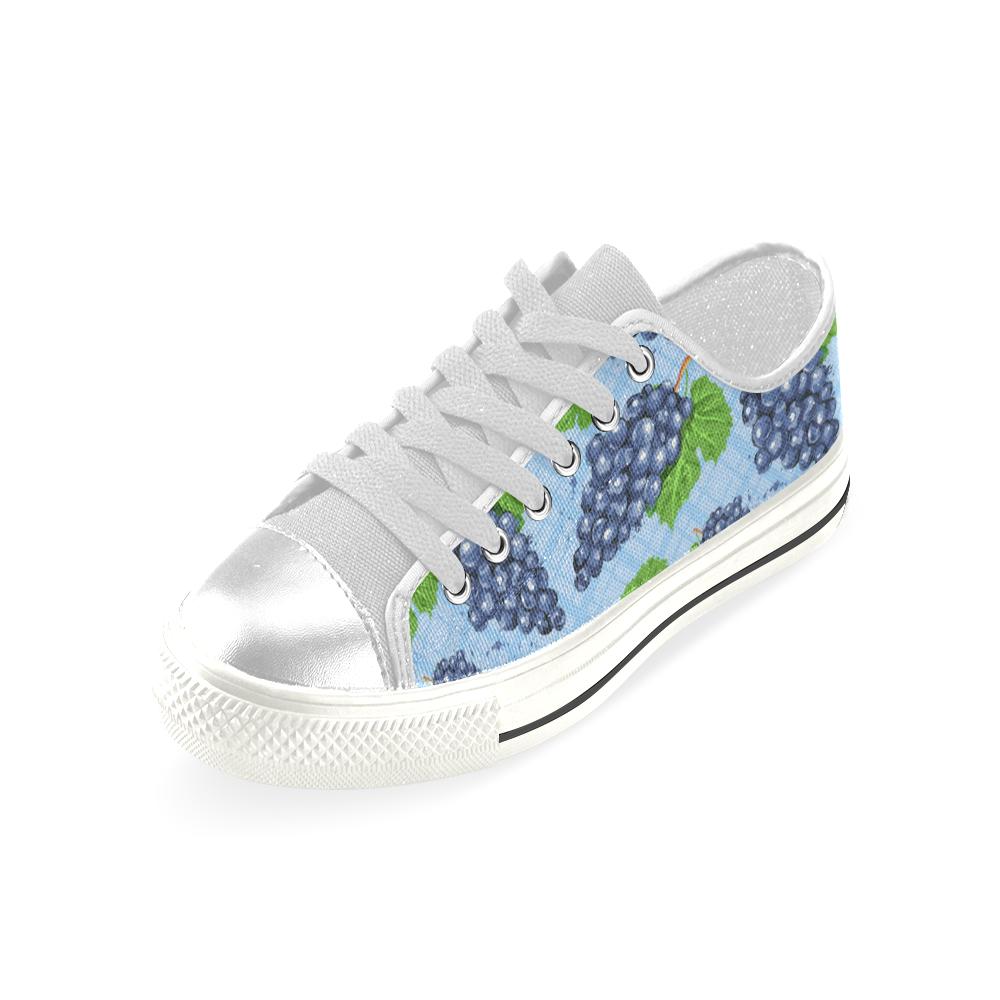 Watercolor Grape Pattern Kid’S Low Top Canvas Shoes White