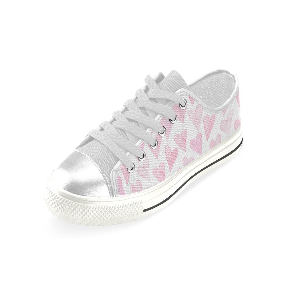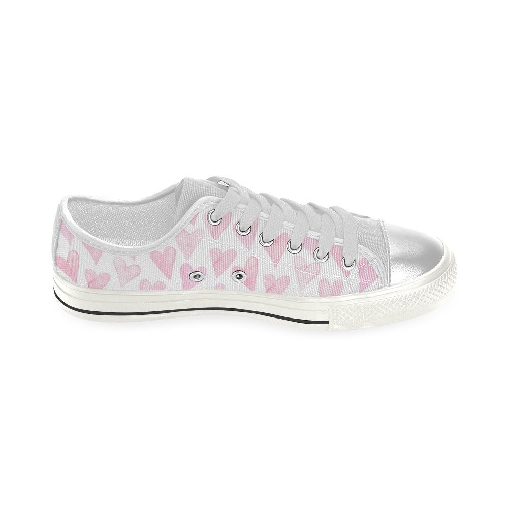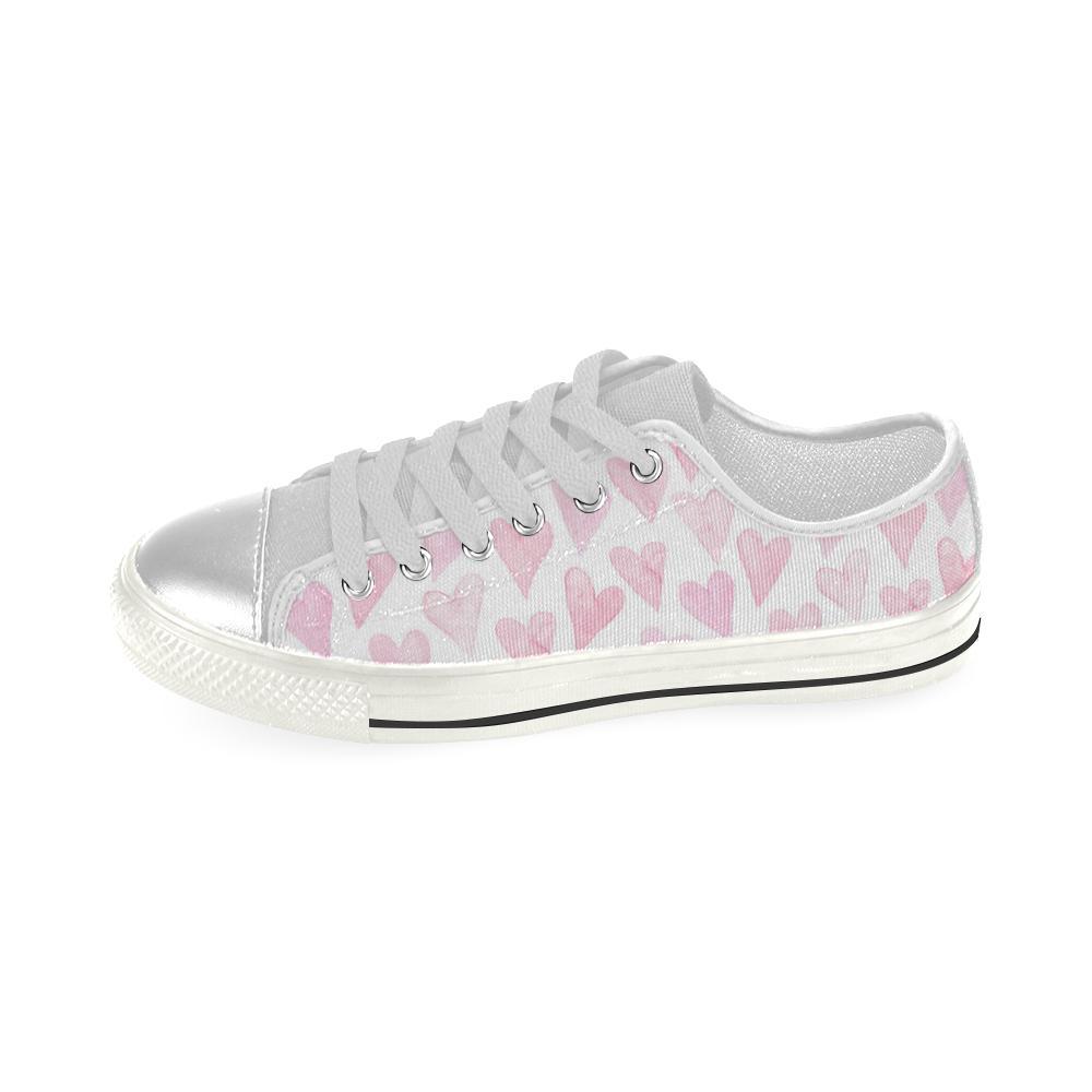 Watercolor Pink Heart Pattern Kid’S Low Top Canvas Shoes White