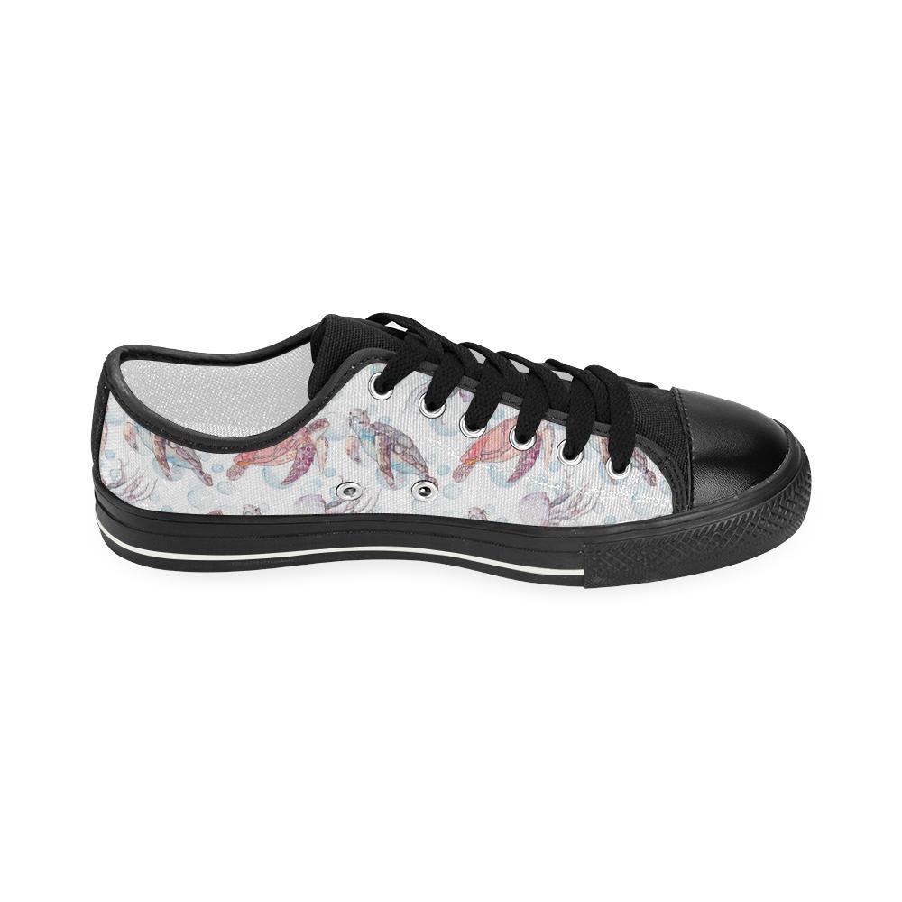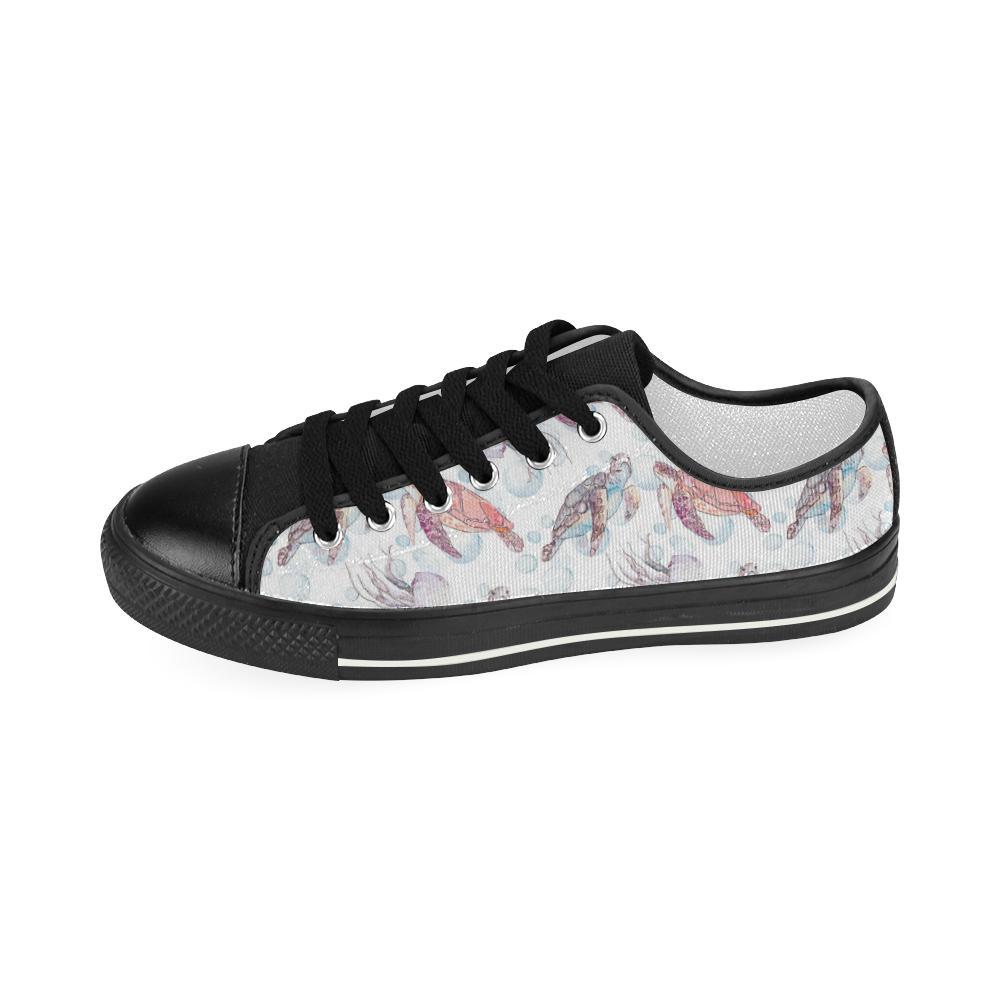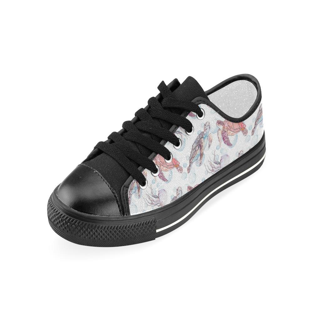 Watercolor Sea Turtle Jellyfish Pattern Kid’S Low Top Canvas Shoes Black