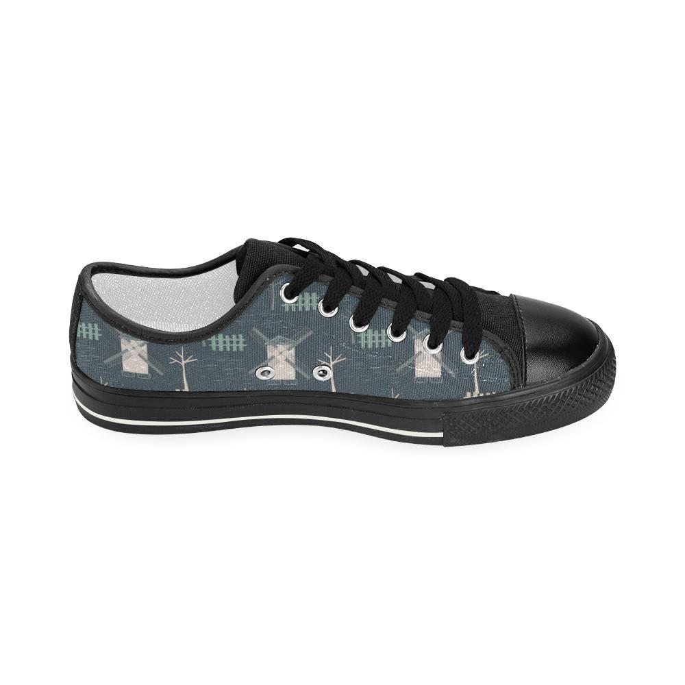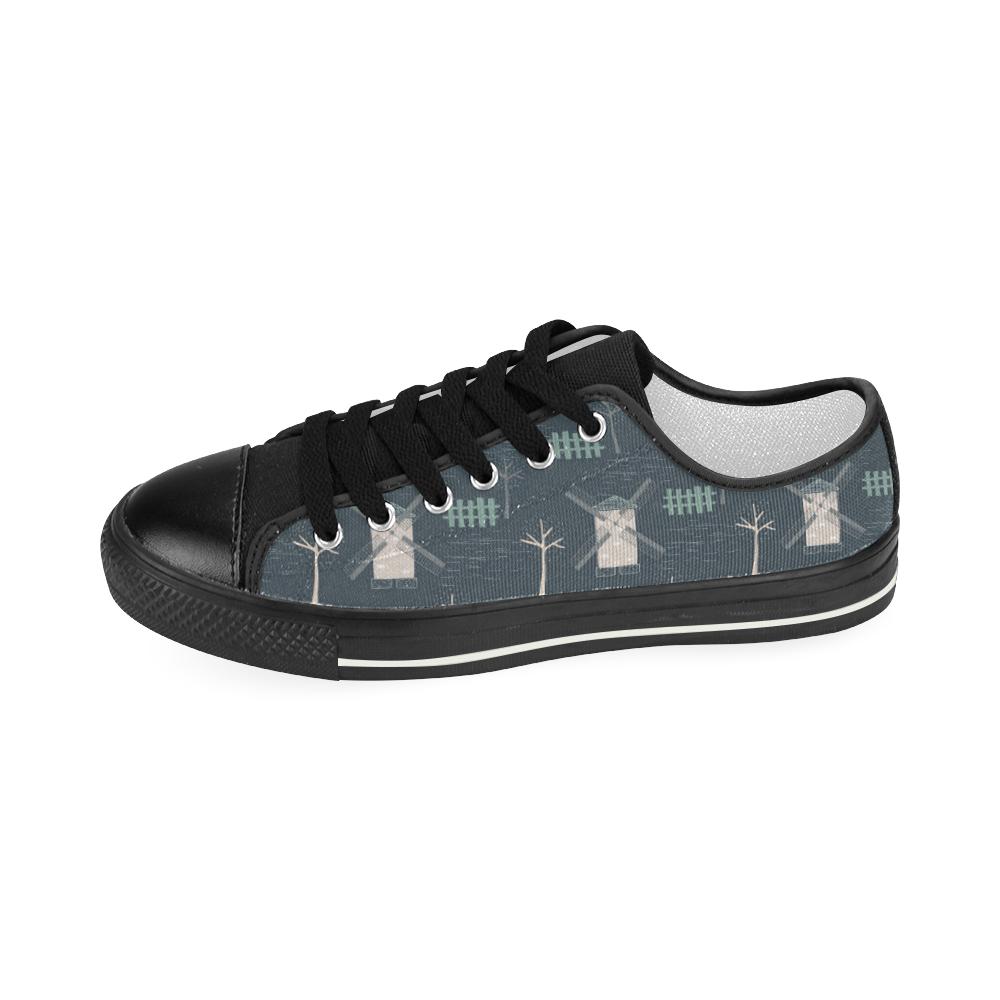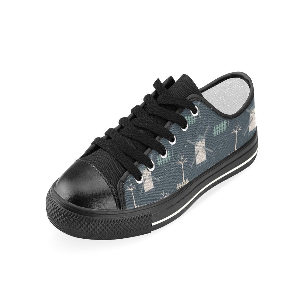 Windmill Tree Pattern Kid’S Low Top Canvas Shoes Black