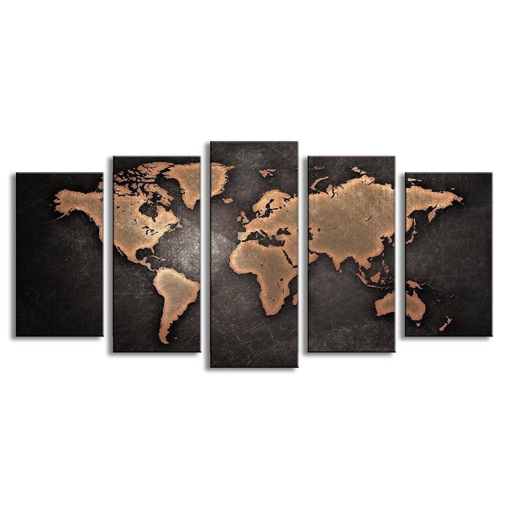 World Map Wall Art Travel Brown Panel Painting – Wall Decor Canvas Prints Canvas Only