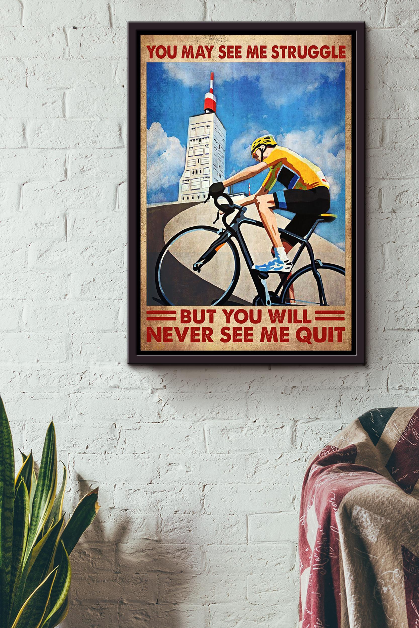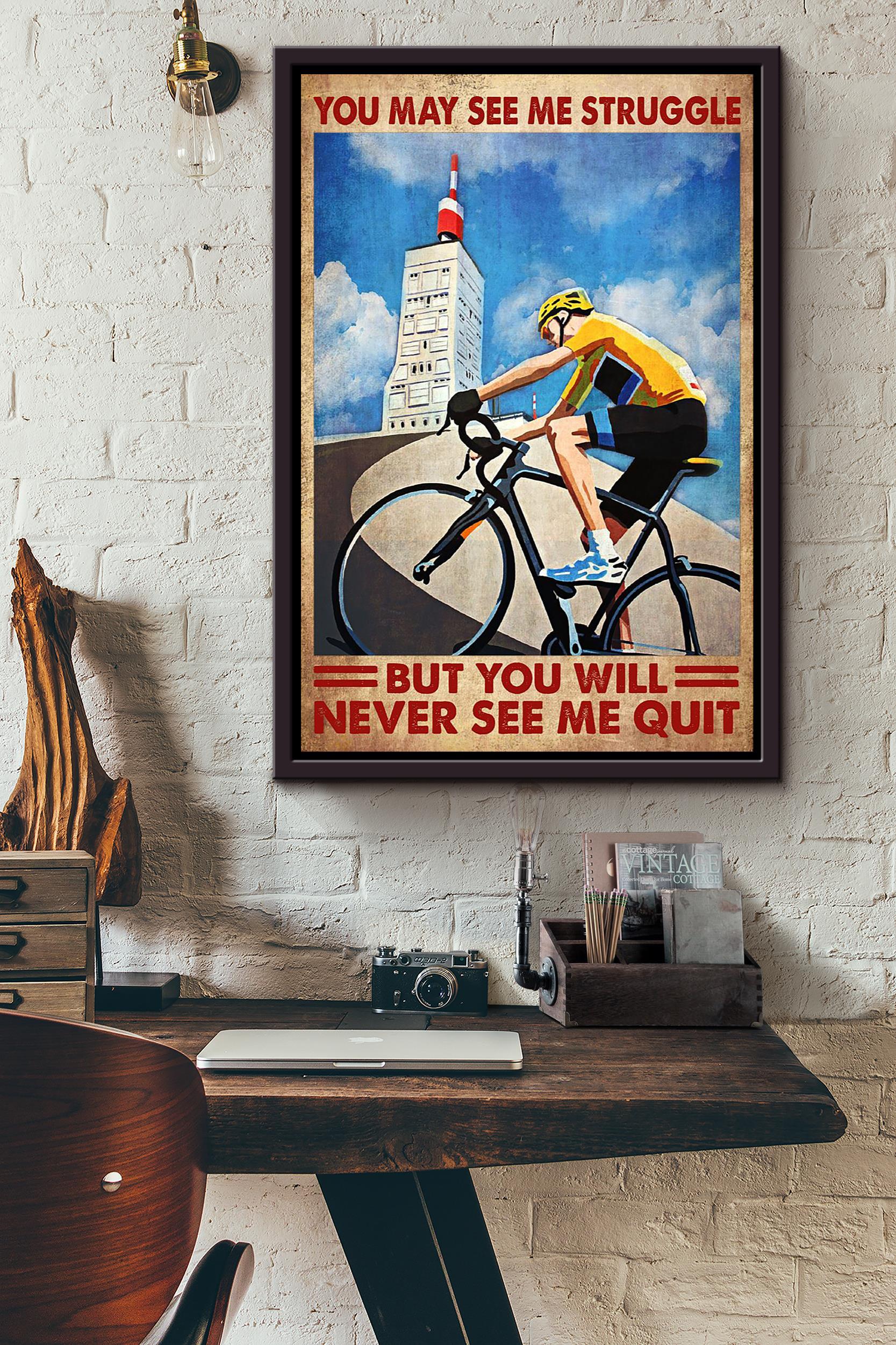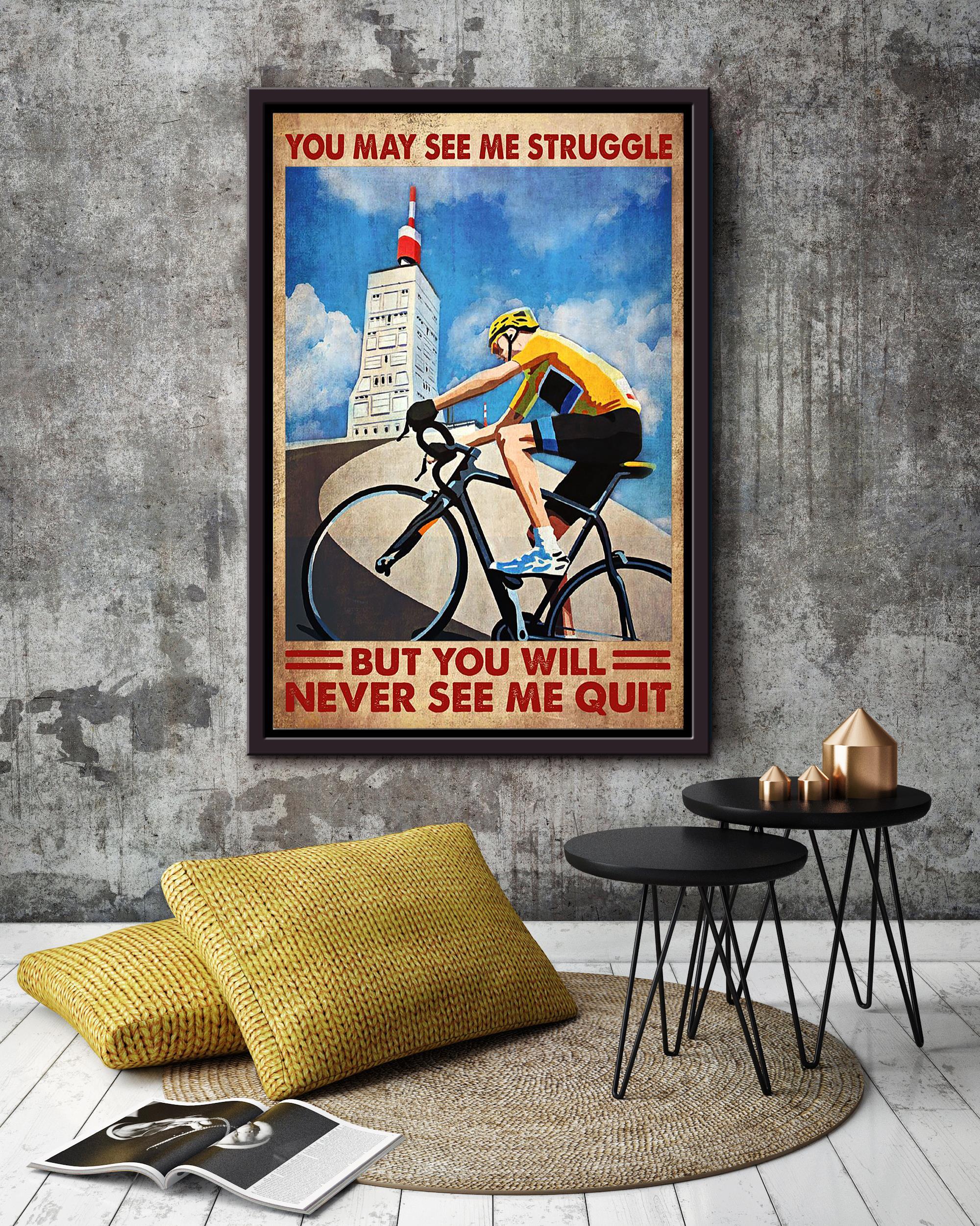 You May See Me Struggle But You Never See Me Quilt Cycling Wall Art Gift For Cyclist Bikeshop Racer Framed Canvas
